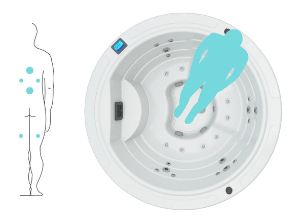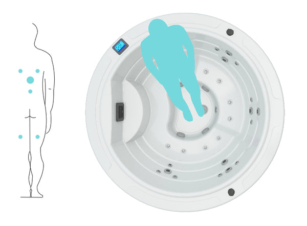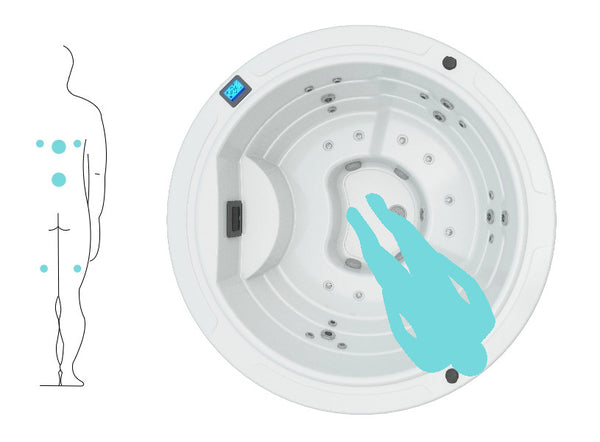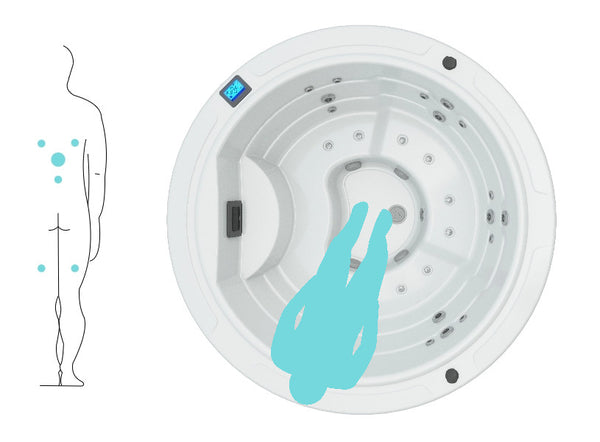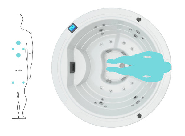 Aquavia's Round 2 Spa: a 5-seater circular built-in jacuzzi, combining design, comfort and complete hydrotherapy.