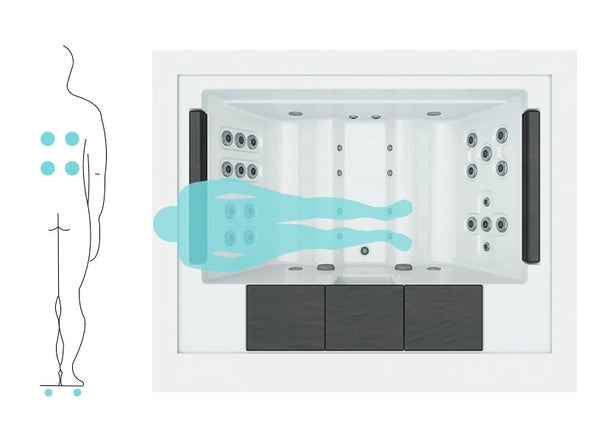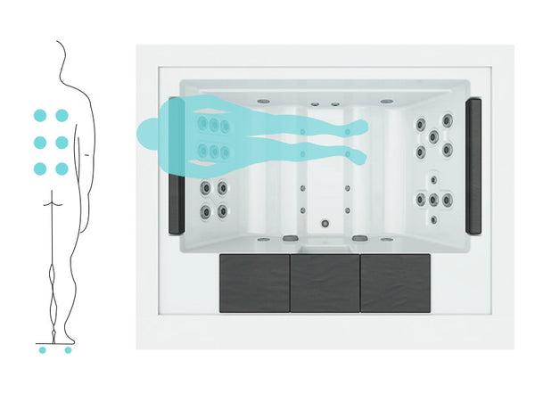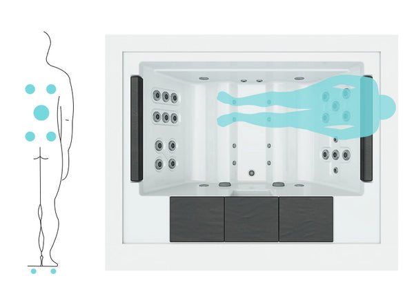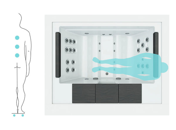 Doté de 4 positions ergonomiques dans deux cabines en forme de chaise longue, le Spa Home combine confort et efficacité. Ses 20 jets d’hydromassage et 8 buses d’air offrent une stimulation musculaire complète, favorisent la circulation sanguine et accélèrent la récupération.