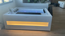 L’expérience est sublimée par ses 4 points LED de chromothérapie, créant une ambiance personnalisée contrôlable via un écran tactile intuitif. Disponible avec des finitions acryliques personnalisables et l’option de mobilier Solid Surface exclusif, il allie design, élégance et durabilité.
