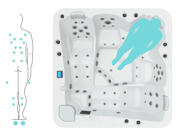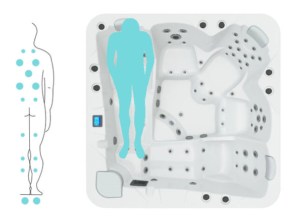 Doté de 72 points de massage, dont 56 jets d’eau et 16 buses d’air, l’Aqua 8 garantit une hydrothérapie complète et relaxante. Son positionnement ergonomique permet d’alterner entre différents types de massages, soulageant les tensions musculaires et favorisant un bien-être profond.
